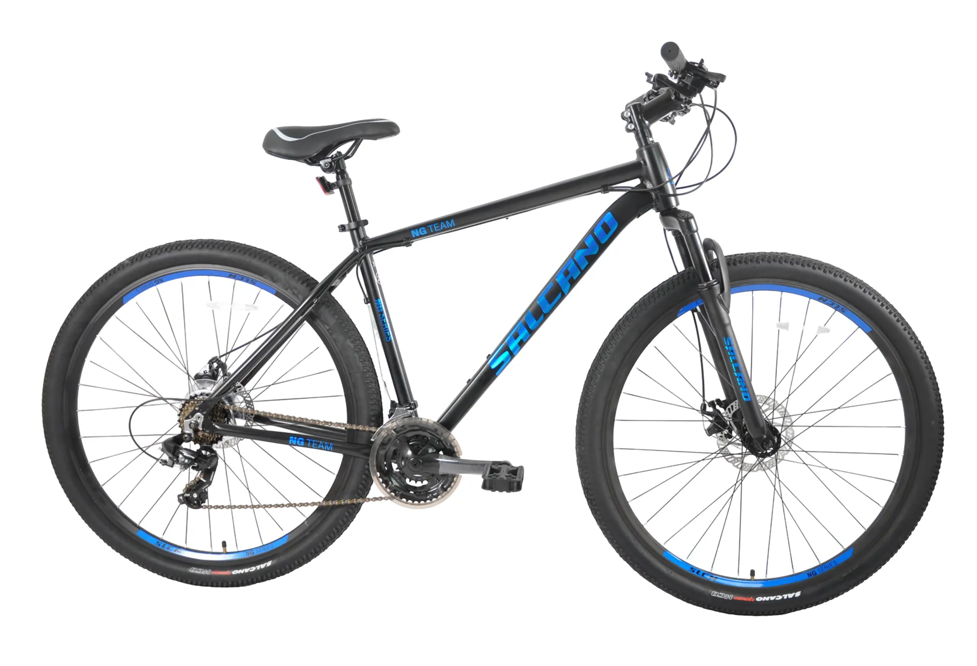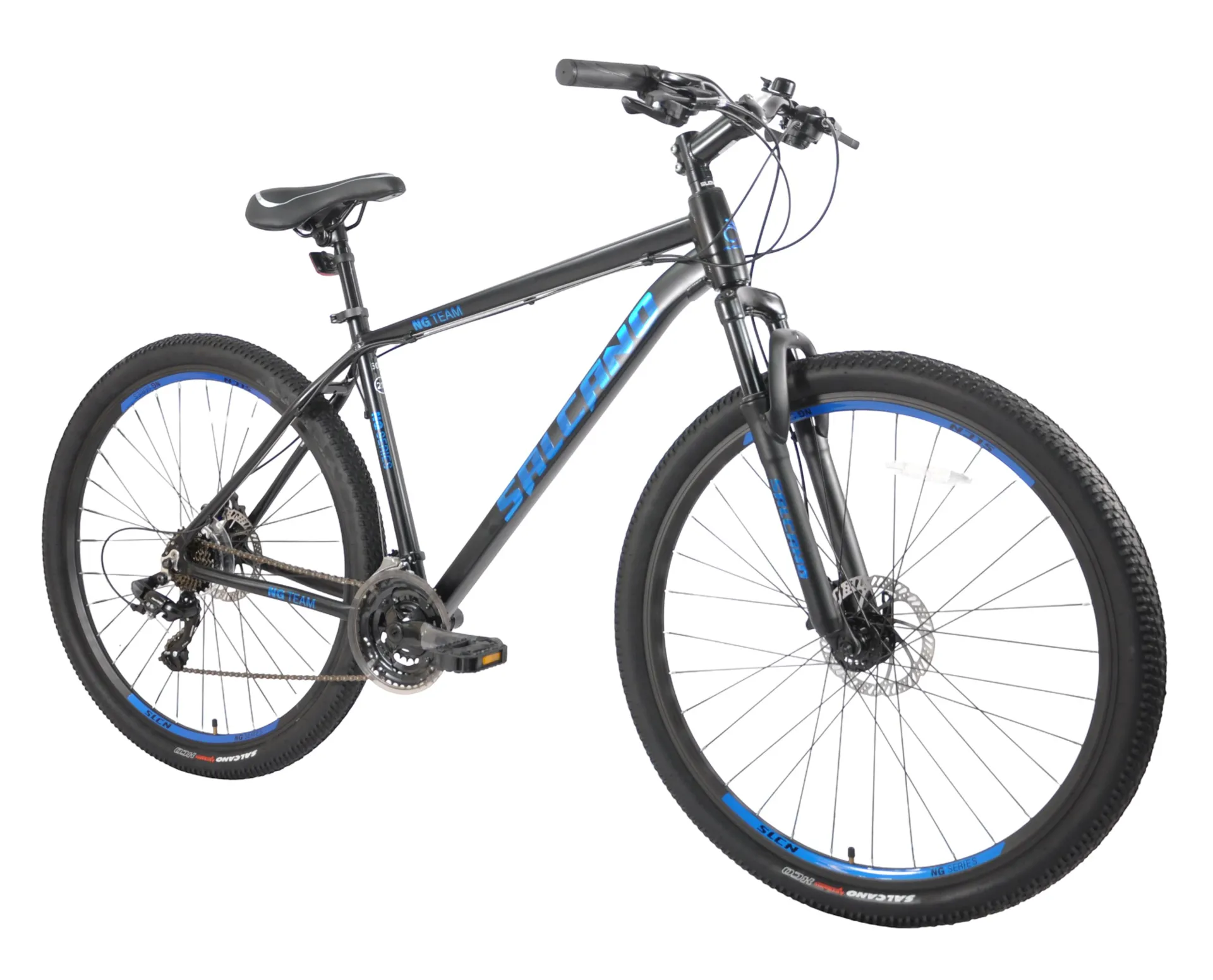 Rolling on 27.5" wheels and Salcano Dynamic Tyres (27.5" x 2.10"), this bike can supply solid control and traction letting you ride on dirt, gravel, or pavement without worry. These wheels are built to last ride after ride.