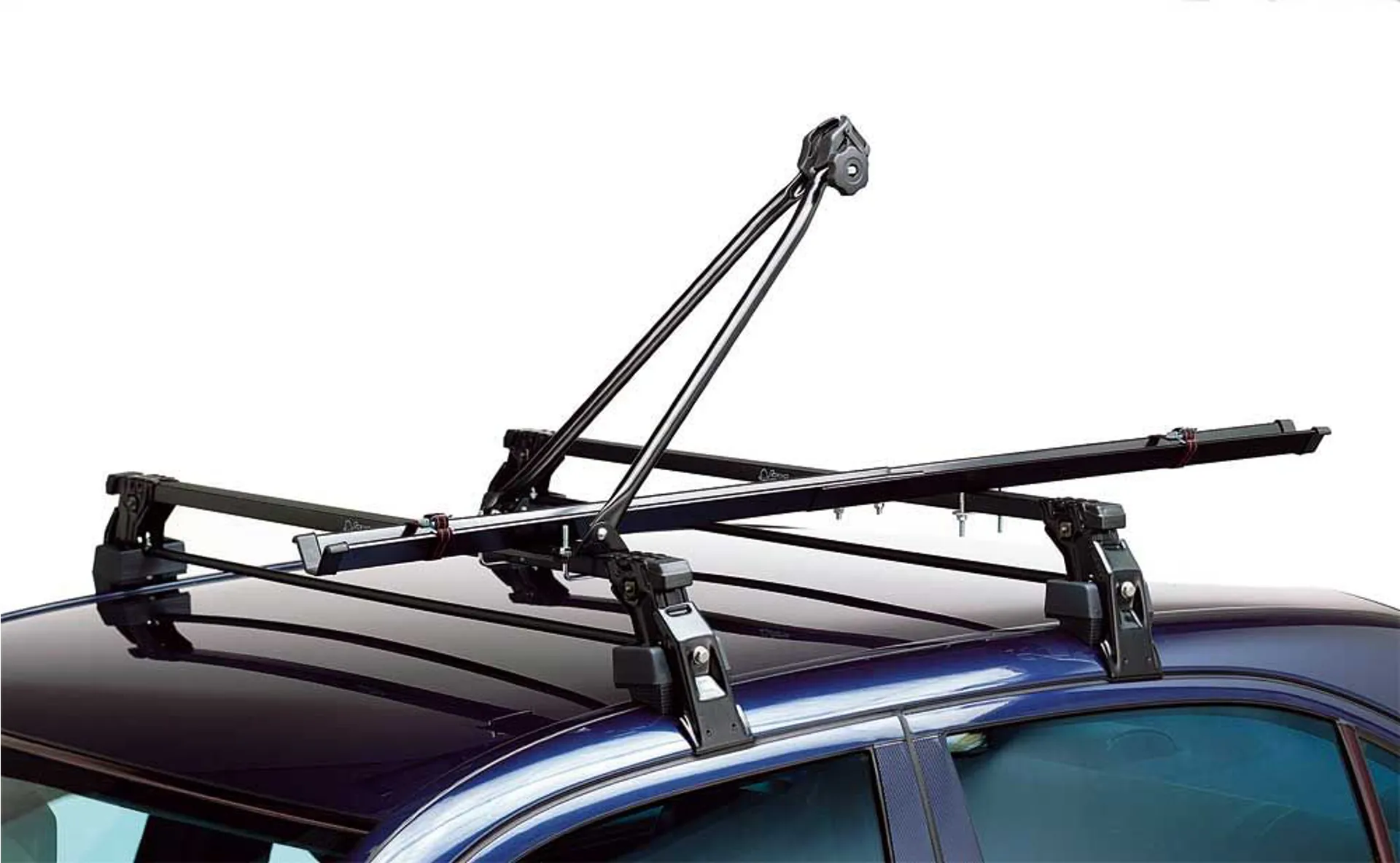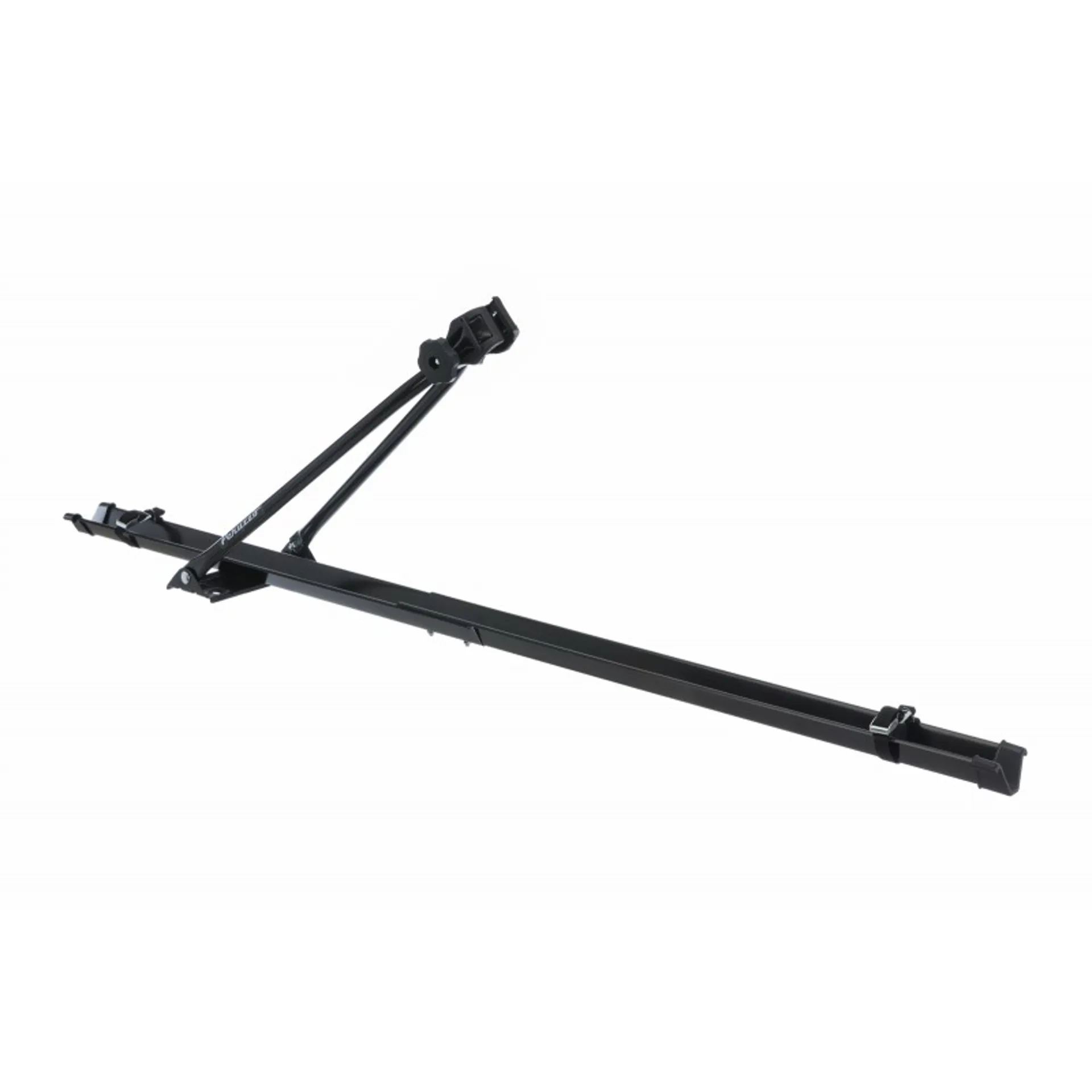 This single bike roof rack is manufactured in steel. The bike sits into a wheel channel & the adjustable clamp fits to the bikes down tube for a secure fastening. Fits to most roof bars.